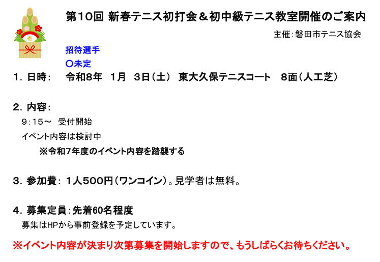 新年早々となります、ふるってご参加ください 募集要項は来月掲載いたします