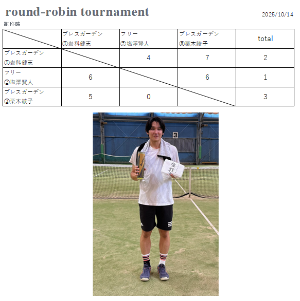 10月10日 | 第10回マンスリー竜洋シングルステニス大会 |